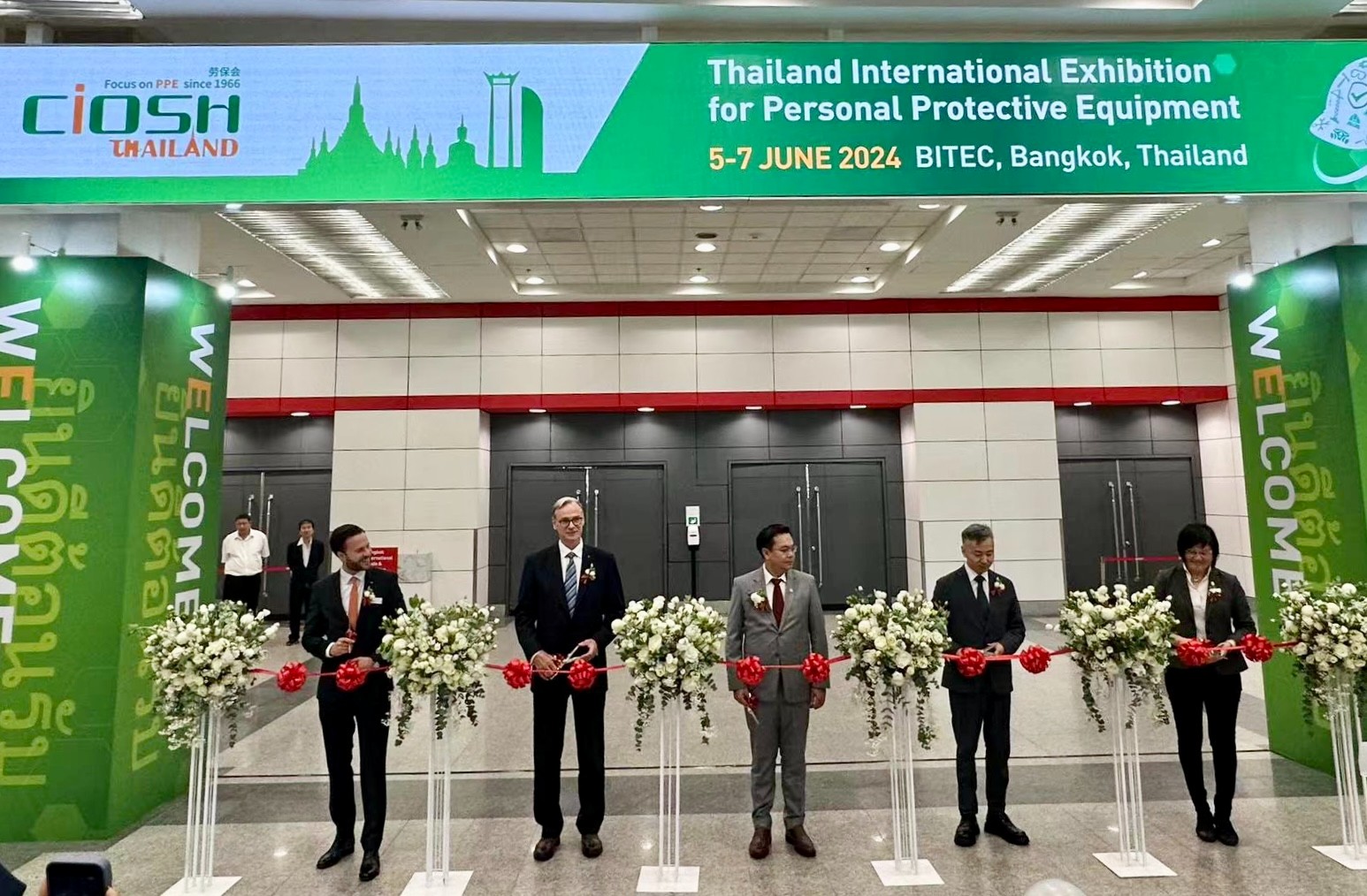 6月5日,由中国纺织品商业协会、杜塞尔多夫展览(上海)有限公司与杜塞尔多夫展览机构亚洲有限公司联合主办的首届泰国劳动保护用品交易会(CIOSH Thailand 泰国劳保会)在泰国曼谷国际贸易展览中心(BITEC)盛大开幕。